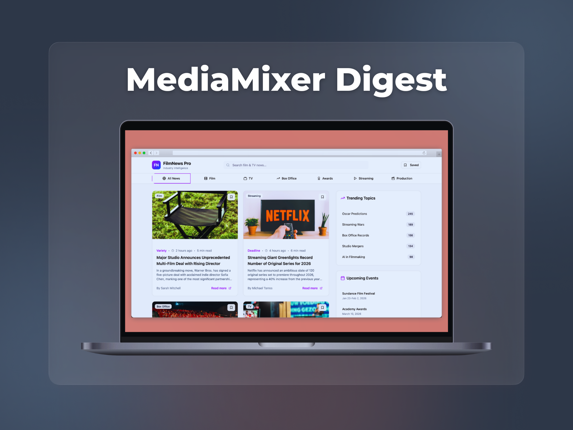 An automated parsing and NLP-driven analysis system that aggregates, de-duplicates, and summarizes TV/film industry news.