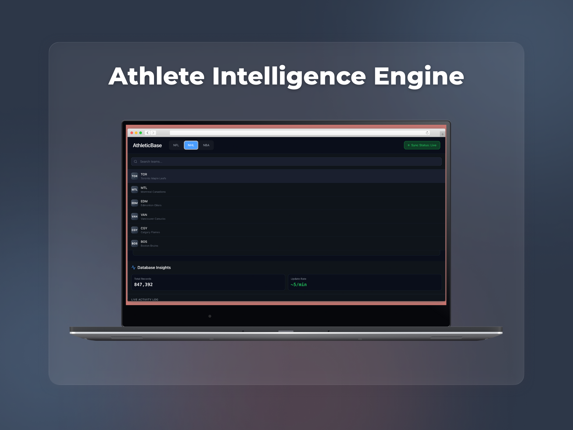 Developed for sports data providers, fantasy platforms, and scouting agencies requiring high-velocity aggregation of player metrics across the NFL, NHL, NBA, and international leagues.
