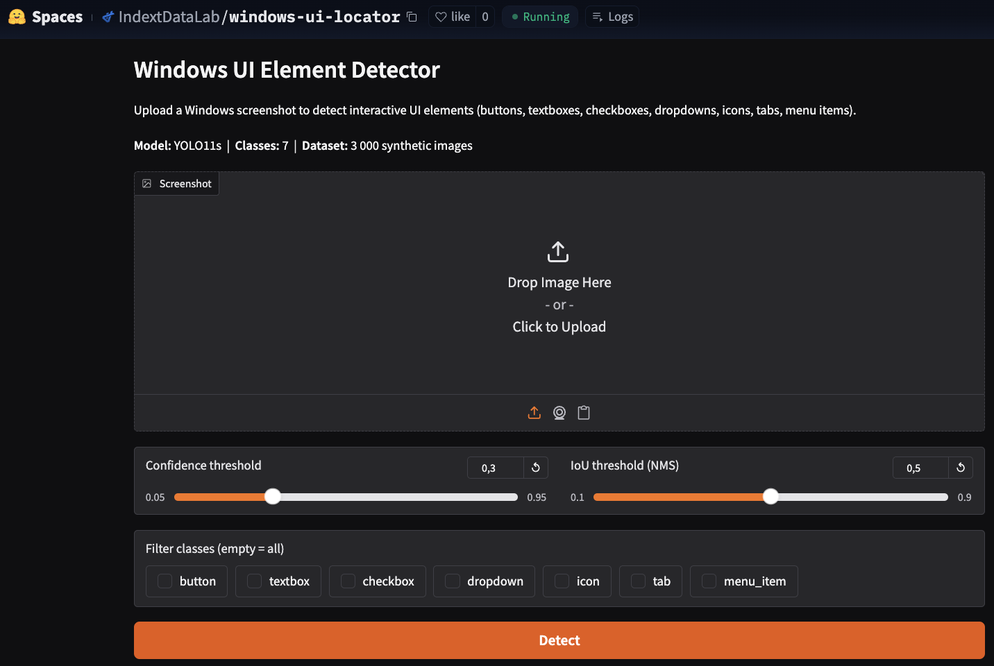 The model was trained entirely on synthetic data — fake Windows-style UI rendered in a browser. Real apps, especially heavily custom-themed ones, can look quite different. We saw a noticeable accuracy drop on Electron apps with unusual styling.